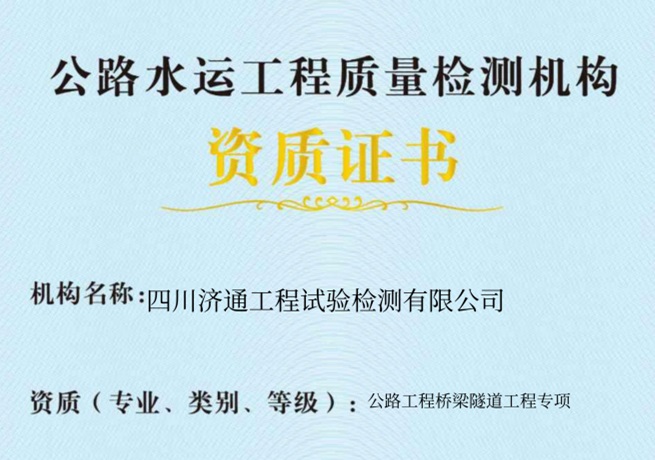 济通检测公司近期正式获颁由四川省交通运输厅核发的《公路水运工程质量检测机构资质证书》,标志着公司在该专业领域的检测资格与能力获得持续权威认可...