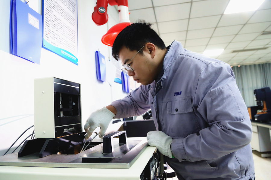 材料检测分公司在试验室进行沥青低温弯曲梁流变试验